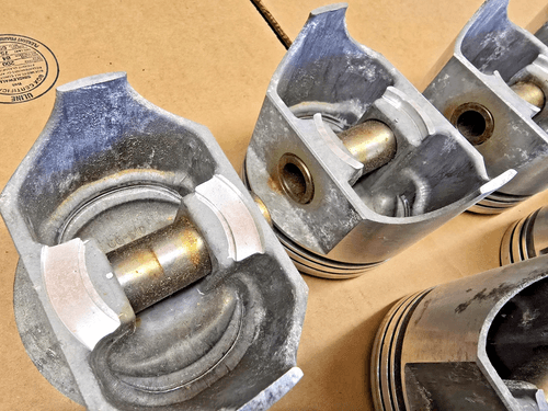 - Please study all the pictures these pistons have sat for over 40 years and have very minor tarnishing due to moisture, this should all be no problem if cleaned gently and properly, you can clearly see the factory "wax" around the gudgeon pins, I have left them as I got them, to show they are original .... If you are reading this listing then I'm sure it is not your first rodeo!